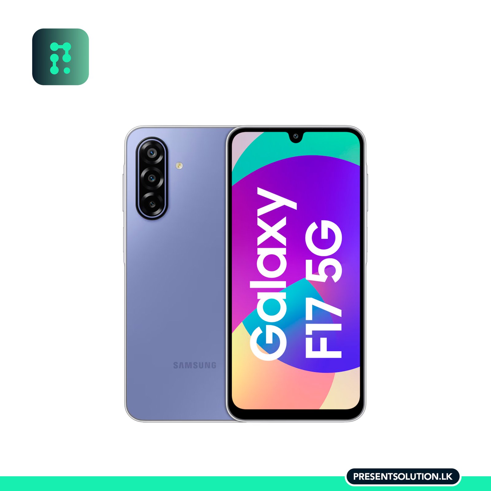 Buy the Samsung Galaxy F17 5G in Sri Lanka from Present Solution. Enjoy a smooth 90Hz Super AMOLED display, 50MP OIS triple camera, and a 5000mAh battery with 25W fast charging.